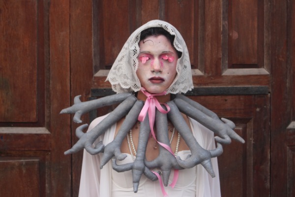 Mi práctica artística se desarrolla desde la pintura y el ensamblaje de pequeñas esculturas textiles y aparatos de vestir. Construyo narrativas a través de personajes hipersensibles que somatizan, mutan y caricaturizan las ansiedades de su contexto cultural, fluctuando entre lo tierno y lo inquietante. A través de mis proyectos busco una metamorfosis constante en el ensamblaje, inspirándome en aquello que mueve: los clásicos del arte, la moda como aparato cultural, los monstruos, la sátira, las dicotomías, el dolor, la ternura y el humor basura del mass media Gen Z.